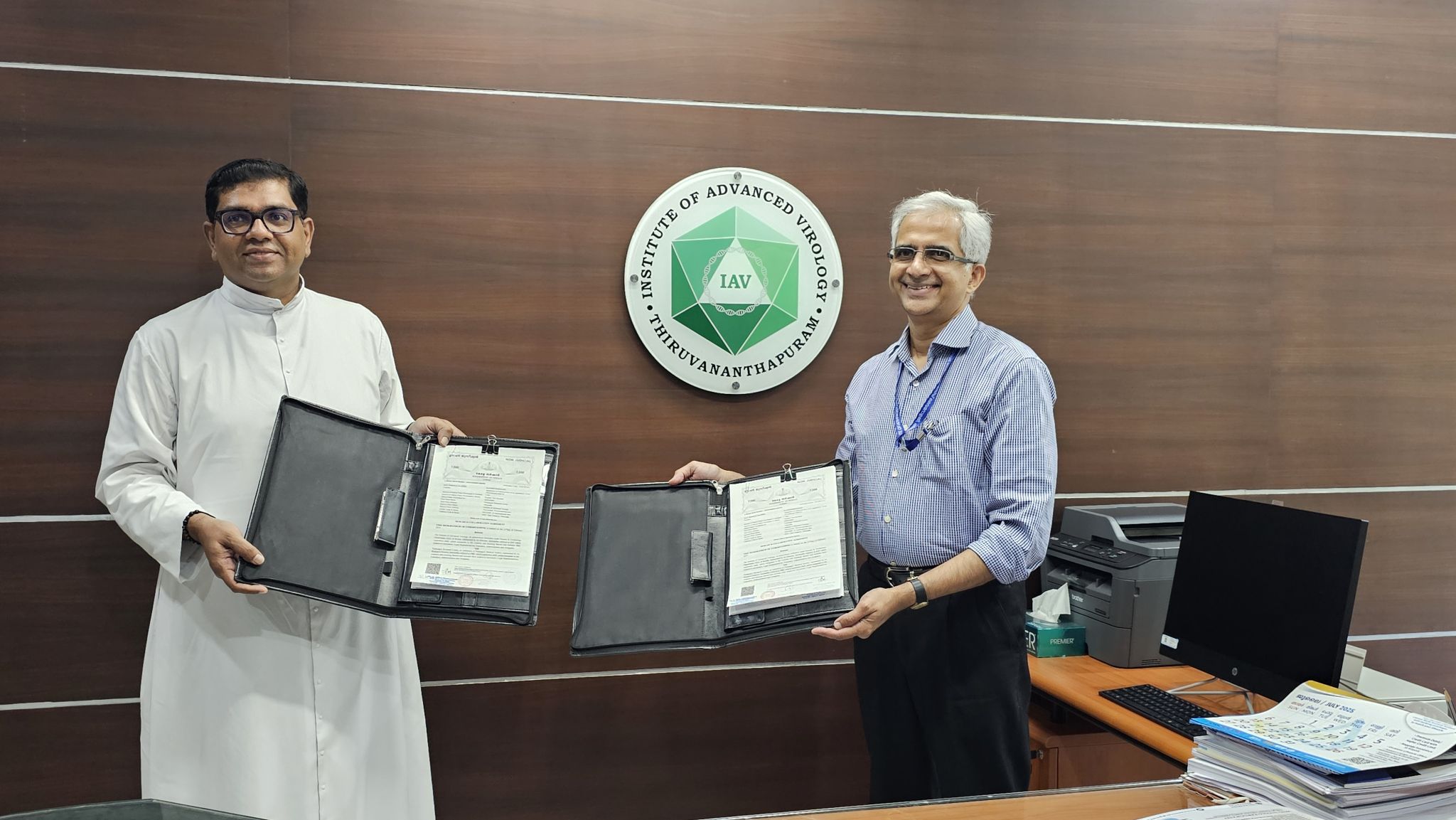 The Institute of Advanced Virology (IAV) and the Pushpagiri Research Centre have officially executed a Memorandum of Understanding (MoU) to foster collaborative research in virology and associated domains. This strategic partnership aims to leverage the combined expertise and resources of both institutions to accelerate scientific discoveries and advance research in critical areas of viral diseases.